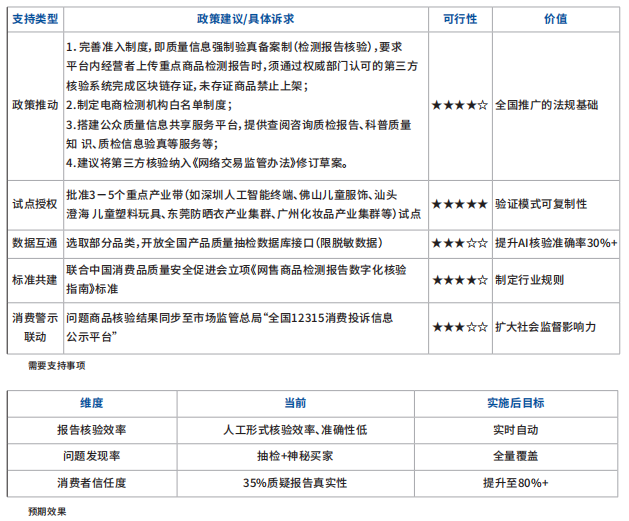 政策可行性。完全契合《电子商务法》第23条“经营者应提供质量证明”要求。