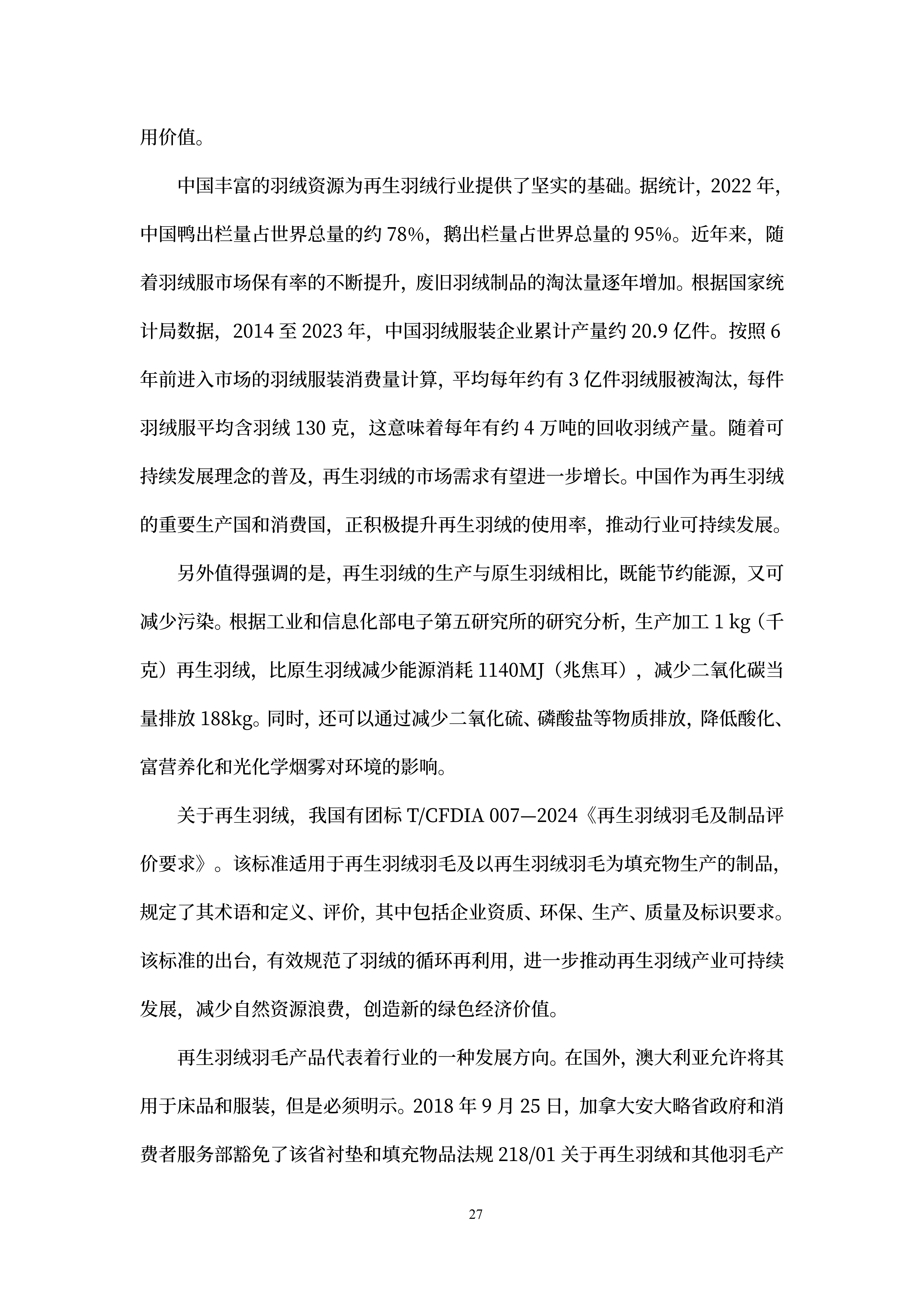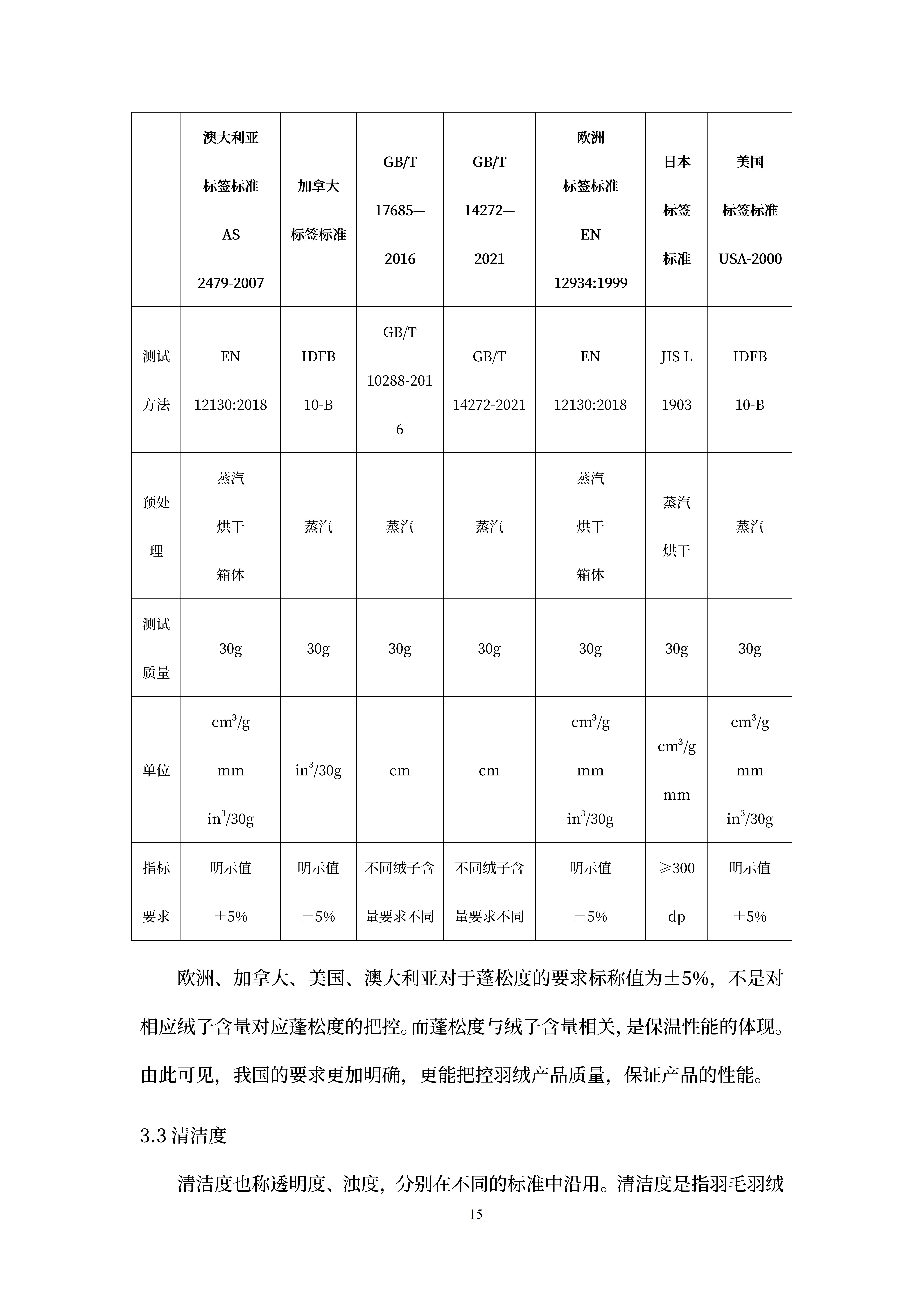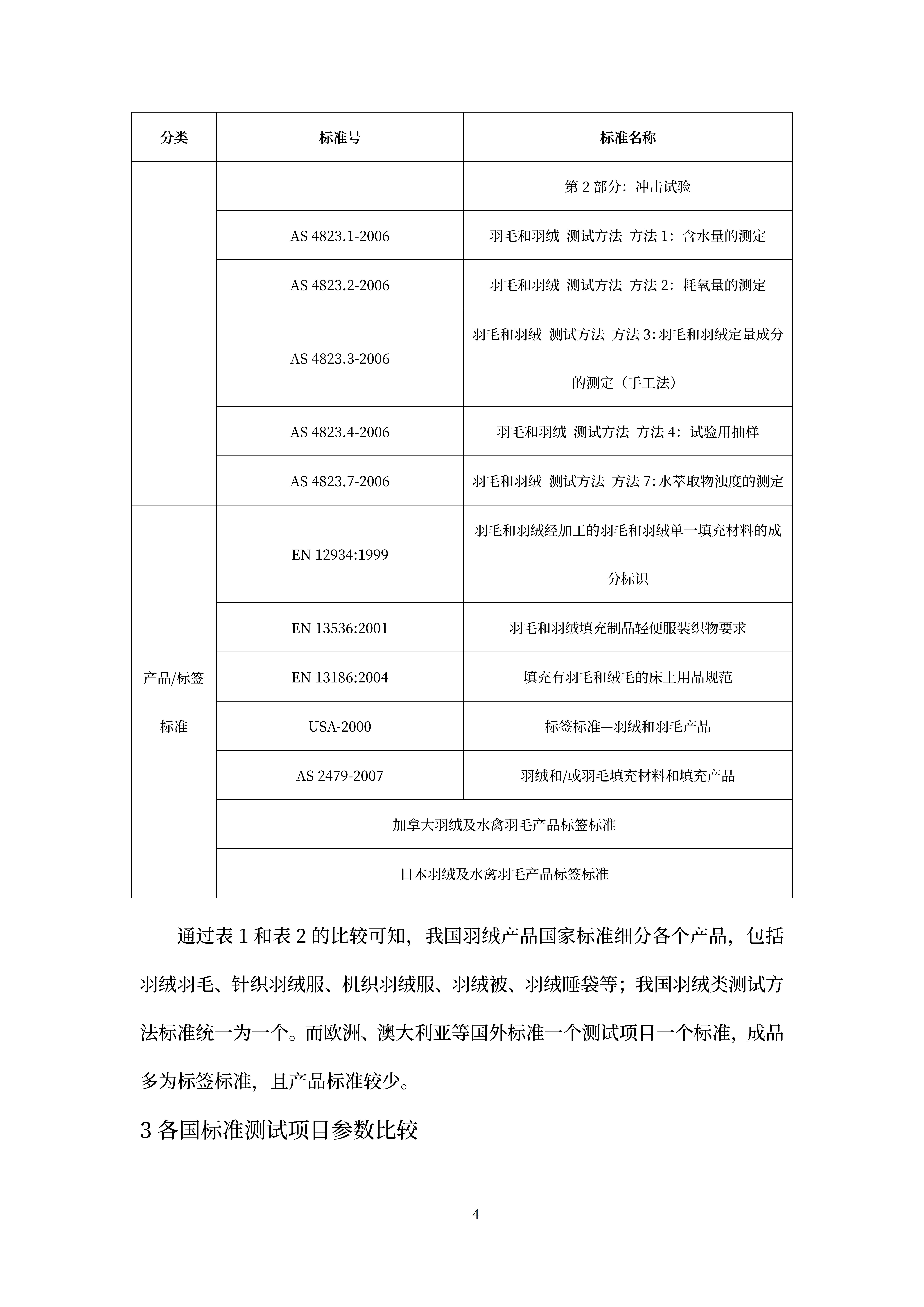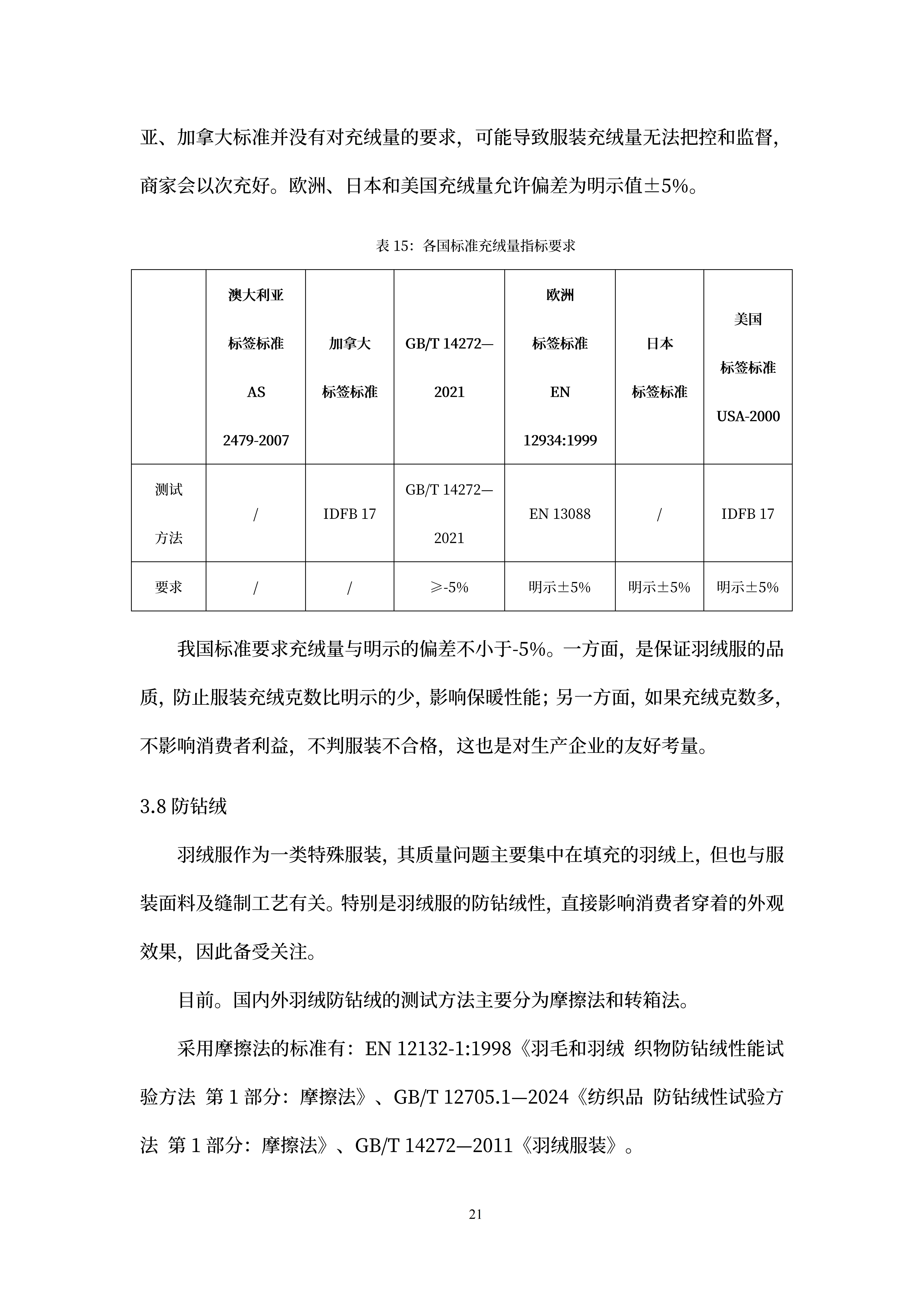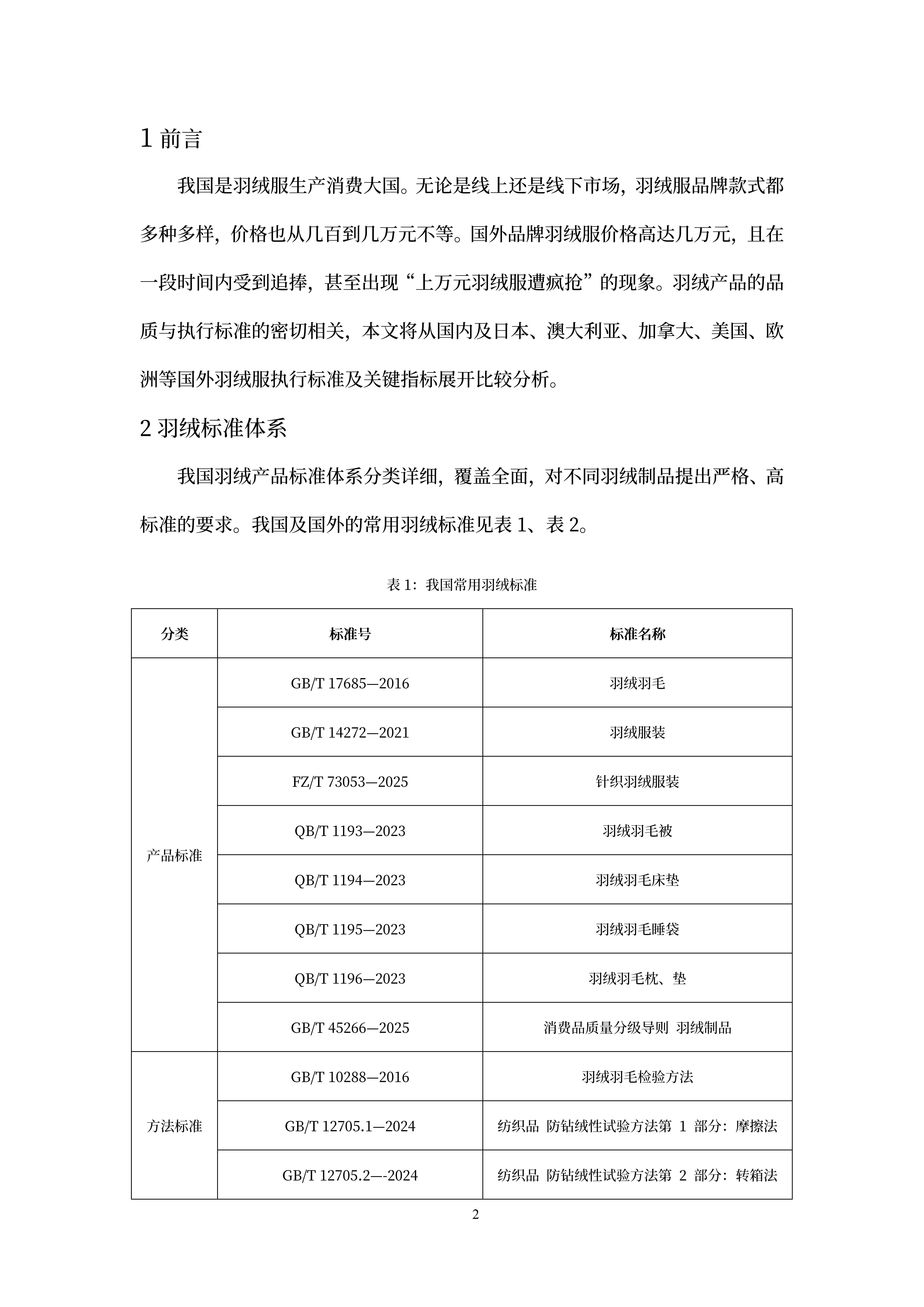 国货潮品(羽绒服)国内外标准比较研究报告