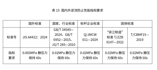 智能马桶逆流防止性能是指在特殊工况下(如自来水供水管网压力突然下降至负压、停水后恢复供水),智能马桶内部污水(如冲洗后的废水、存水弯积水)不会反向流入自来水管道的防护能力。国内外标准中逆流防止性能的最低要求见表15。