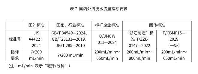 智能马桶清洗水流量是指其在开启臀洗、妇洗等清洗功能时,单位时间内从喷杆出水口排出的水量,核心衡量指标为“毫升/分钟(mL /min)”,本质是描述清洗水流的强度与效果。智能马桶清洗水流量既决定了清洗过程中水流是否足够清洁污物,也直接影响冲洗时的体感舒适度,是平衡清洁效果与使用体验的关键参数。国内外标准中清洗水流量的最低要求见表7。