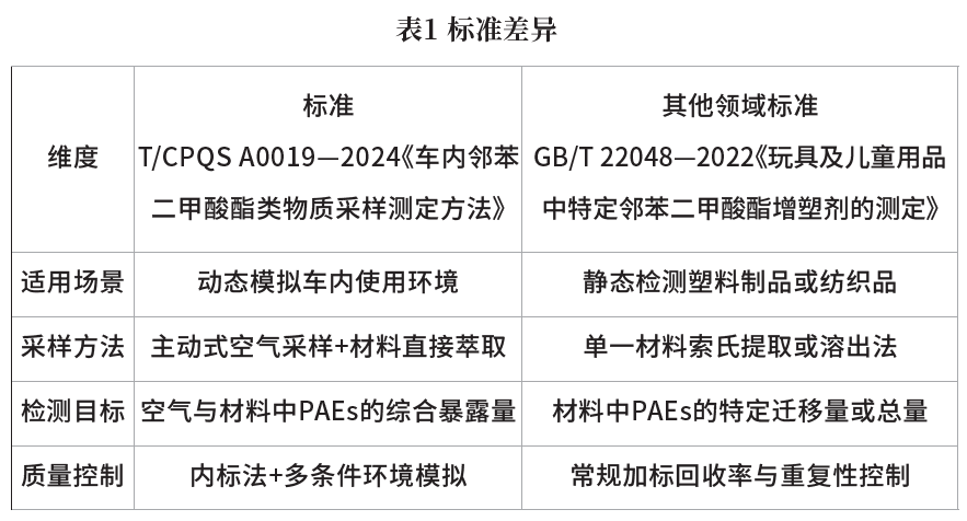 [摘要] 本文通过对T/CPQS A0019—2024《车内邻苯二甲酸酯类物质采样测定方法》团体标准(下本简称“标准”)的分析,旨在为后续监测邻苯二甲酸酯类物质(PAEs)提供基础。以科学检测技术填补研究空白、以内饰与空气联测防控健康风险、以本土化技术创新引领行业升级,为我国车内环境健康管理从“单一污染物管控”向“系统性健康工程”转型提供核心支撑。消费者在选购车辆时,可优先选择经符合此标准检测且 PAEs 含量达标的车型,切实降低健康暴露风险。