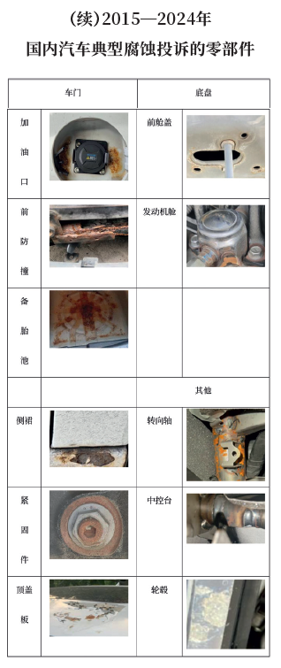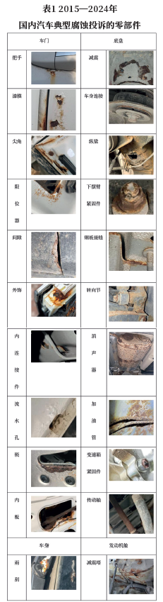 通过统计梳理近十年(2015—2024年)中国市场汽车腐蚀投诉案例,可获得以下结论:
