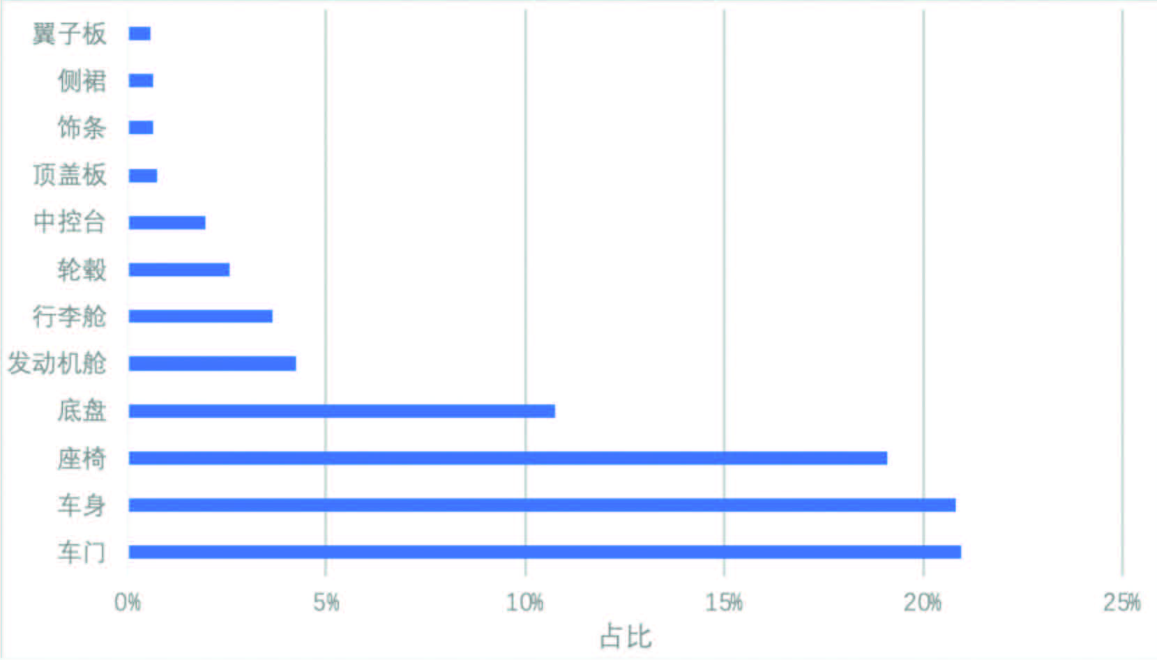 图3 汽车腐蚀投诉案例中主要零部件分布