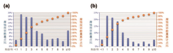 图1 2024年腐蚀投诉分析 (a)车身及内饰腐蚀投诉;(b)底盘腐蚀投诉