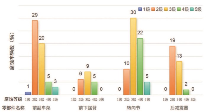 图5 在用车连杆与悬架件腐蚀等级分布