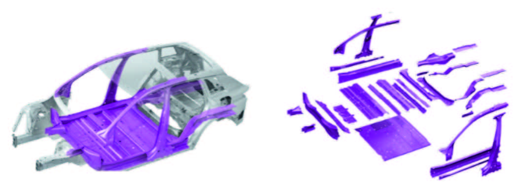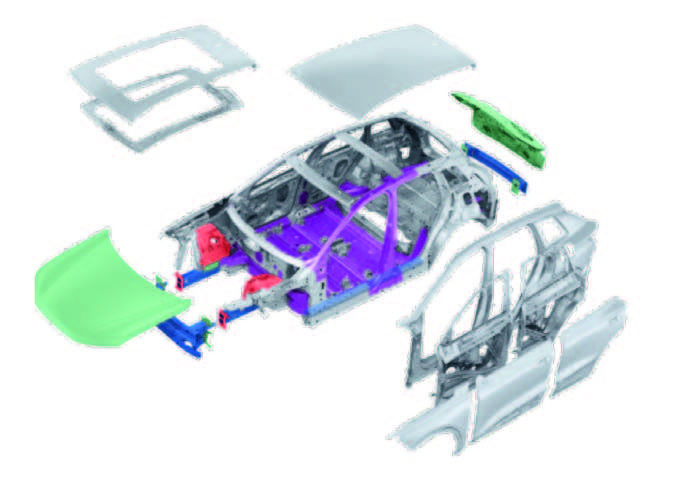 图1 奥迪Q6L e-tron白车身爆炸图(含四门两盖)