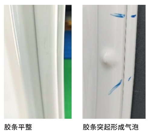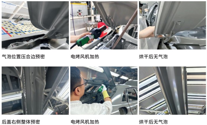 其中,10 台测试车身中7台胶条状态完好,3台存在小气泡(推测原因是预密处理不够严密)
