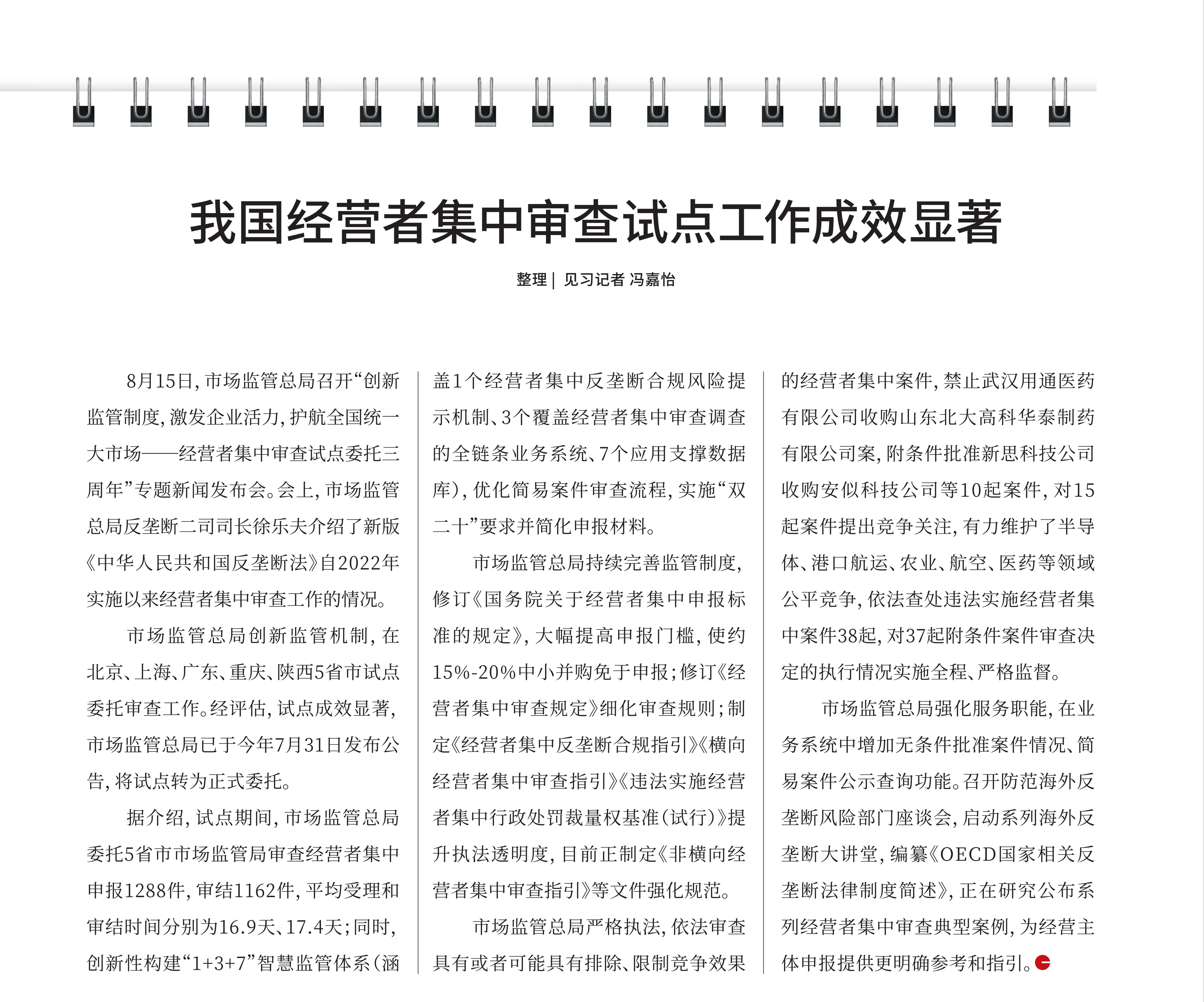【新闻发布】我国经营者集中审查试点工作成效显著