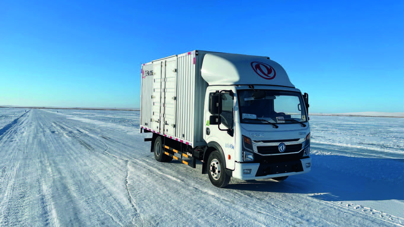 东风轻卡系列车型在气温约-30℃的黑龙江黑河进行低温标定和耐久测试。
