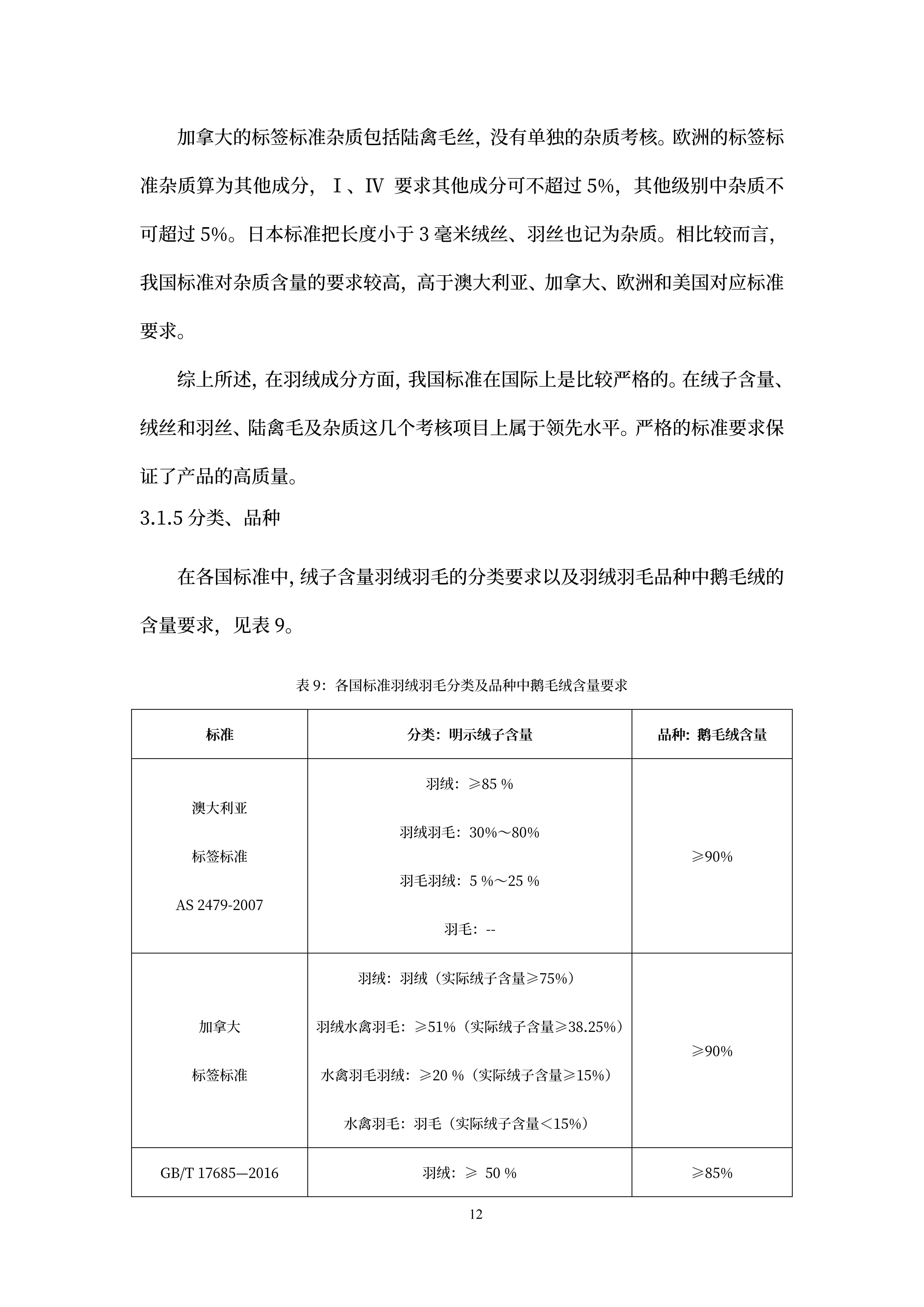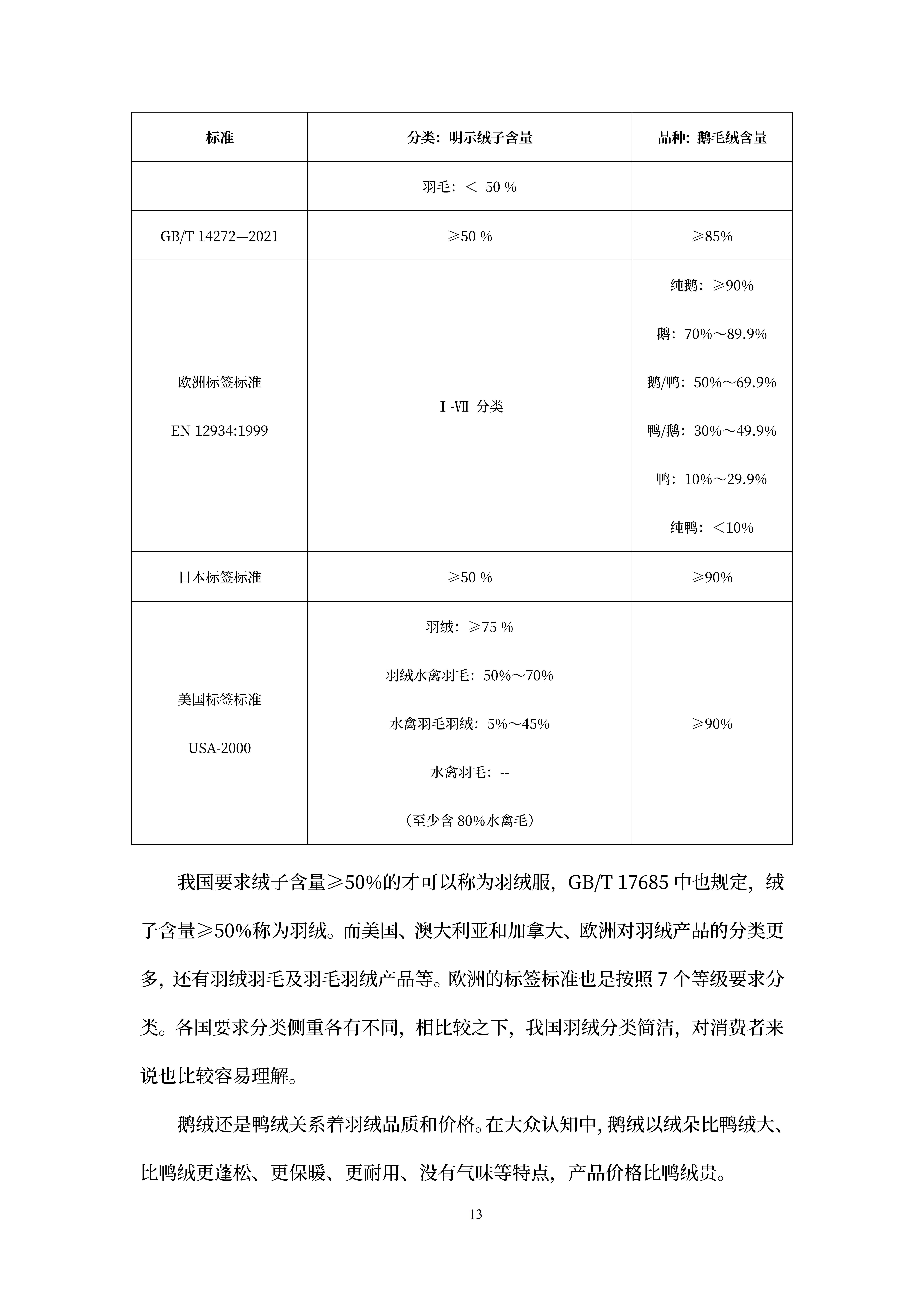 国货潮品(羽绒服)国内外标准比较研究报告