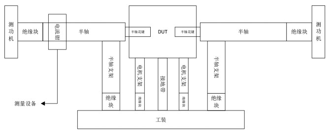 在电机壳体与两侧工装半轴支架连接的接地方式中,轴电流通过电机壳体、半轴、半轴支架及铜编织带所构成的回路进行回流。该路径同样具有较低的回路阻抗,能够引导轴电流经半轴支架与铜编织带流向电机壳体,并最终通过电机接地点和高压母线屏蔽层导入接地平面。因此,该接地方式也能有效阻断轴电流通过高阻抗路径形成的辐射,降低系统的辐射发射水平。