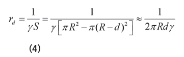 高频电流流经线缆时会产生趋肤效应,这种情况下电流只会流过导体表面,因此线缆的电阻会增大。由式(3)可以得出趋肤深度d频率的升高而减小,电阻也会随之增大。式(4)为单位长度下导体电阻 的表达式。