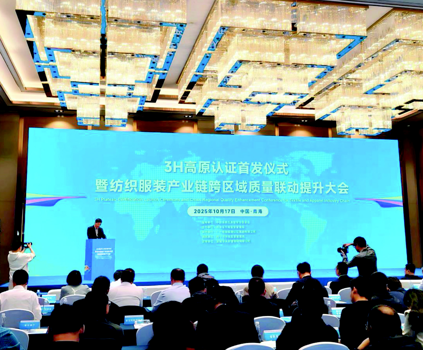 由中国消费品质量安全促进会指导、青海省市场监管局主办、广州检验检测认证集团有限公司(以下简称“广检集团”)承办的“3H高原认证首发仪式暨纺织服装产业链跨区域质量联动提升大会”,近日在青海省西宁市举行。来自政府部门的有关领导及近百家产业链龙头企业、科研机构、行业协会代表共同参加了这一盛会。