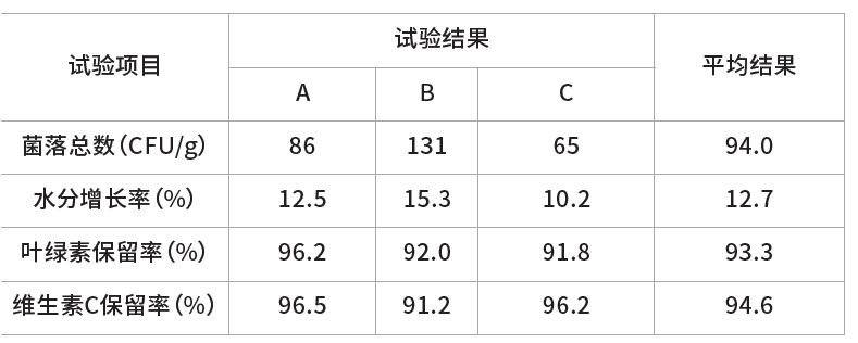 基于上述测试方法,经家用电冰箱试件的充分验证,收集和分析了大量测试数据。在此基础上,提出了关于电冰箱茶叶保鲜的测试方法。该研究主要对菌落总数、叶绿素保留率、维生素C保留率及水分增长率的测试方法进行了创新。