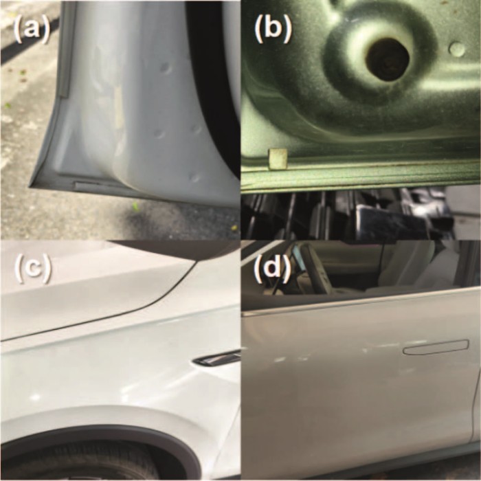 车身钣金与覆盖件中腐蚀风险较高的部位包括车门尖角、车门内侧折边、翼子板等。其中,车门尖角由于结构形状特殊,在电泳涂装过程中电泳液难以充分渗透和均匀附着,导致尖角处的漆膜厚度可能明显薄于平整区域,是车门中容易发生腐蚀的部位之一。车门折边如有打胶工艺缺陷,在涂胶和金属之间产生微小缝隙则易产生腐蚀现象。而翼子板由于位置关系容易受到飞溅石子的冲击,导致涂层脱落进而引发腐蚀。