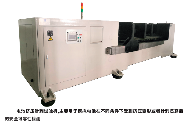 目前,瑞佳达自主开发的产品以安全类设备和环境类设备为主。其中,安全类设备包括短路机、针刺挤压机、燃烧机、跌落机、重物冲击、翻转设备、热失控设备、海水浸泡设备等;环境类设备涉及水冷机、直冷机、高温试验箱、高低温恒温恒湿箱、快速温变箱、多层高低温箱、低气压箱、冷热冲击箱、步入式温箱等。除此之外,瑞佳达还根据客户需求,开发生产电阻箱、冰水冲击、各型带沉降灭火平台、气体收集、试验用集装箱设备等非标检测设备。